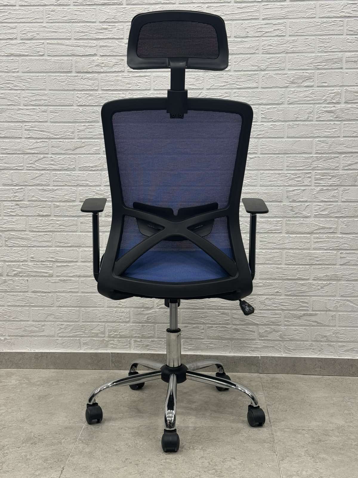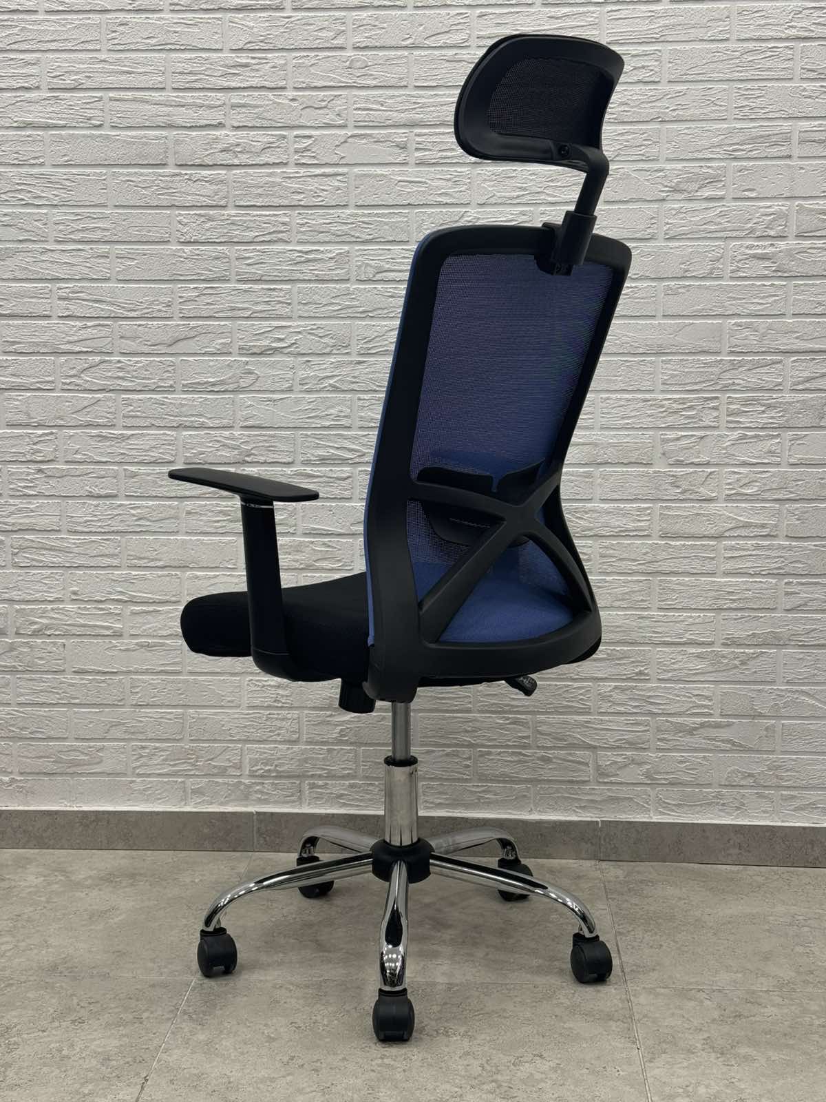 Seria scaunelor SMART - sunt scaune rotative cu spătar scurt însă acest model este dotat cu tetiere.